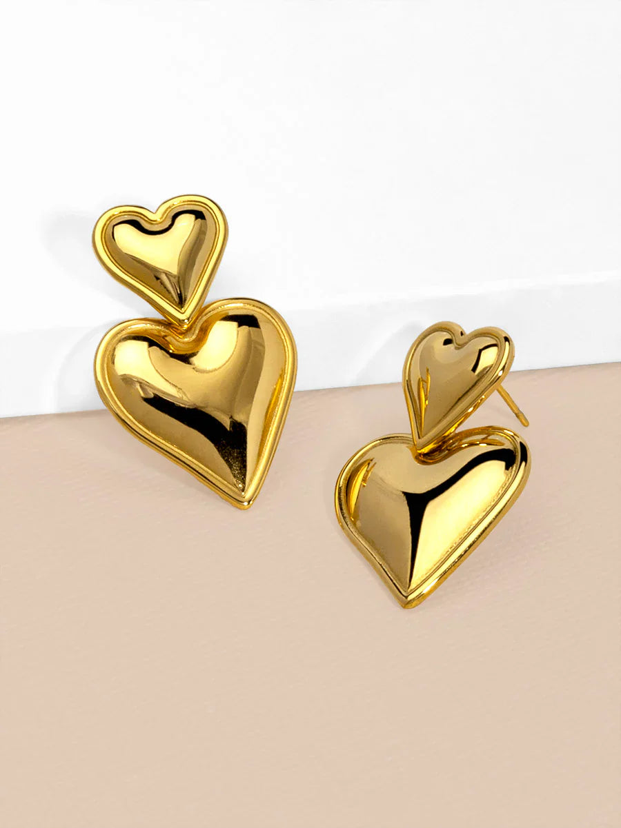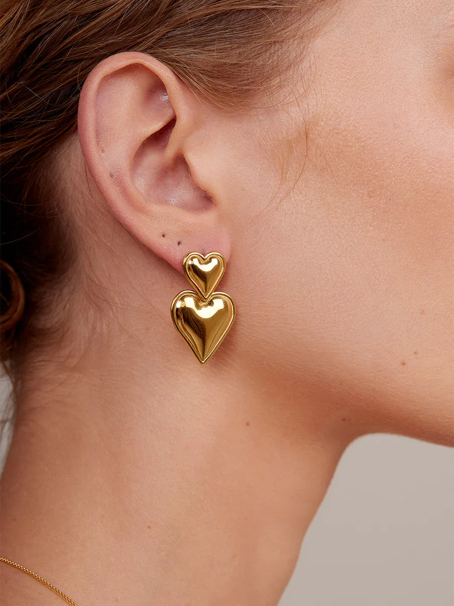 Expertly crafted with 18k gold plating. the Adore Earrings feature two beautifully designed hearts that effortlessly drop from your ears. Their waterproof and anti-tarnish properties make them perfect for both casual and formal occasions. Elevate your style with these elegant and durable earrings.