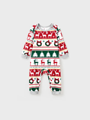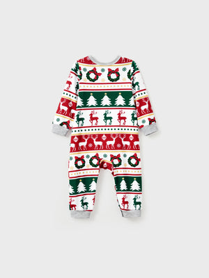 Christmas Pajamas Family Matching Allover Reindeer/Xmas Tree Pattern PJs Sets with Christmas Socks ColorBlock