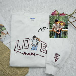 Custom Embroidered Photo Portrait For Mom Dad Love Sweatshirt