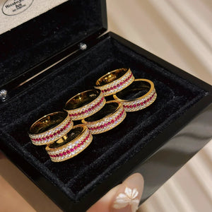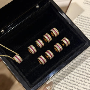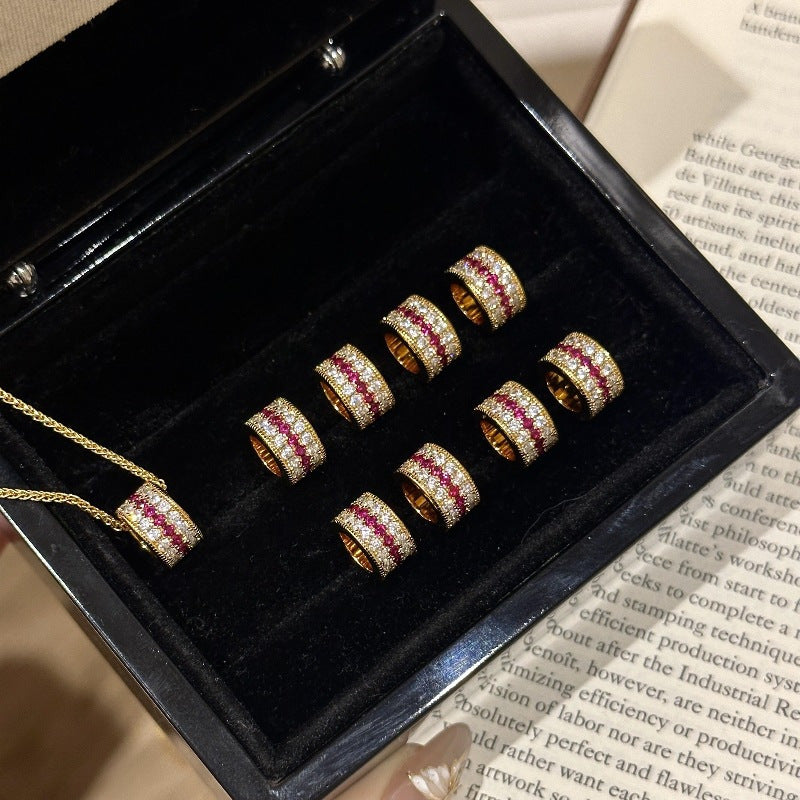 Diamond-set red corundum ring and necklace