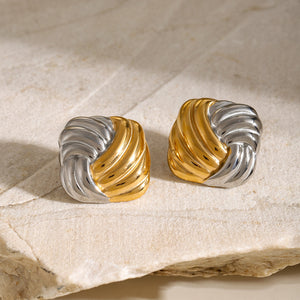Elevate your accessory collection with these Dual Drape Earrings. expertly crafted with a dual-tone finish and 18k gold plating. Designed to resist tarnishing and waterproof for lasting shine. they offer both durability and sophisticated style. Perfect for adding a refined touch to any ensemble.