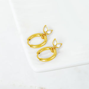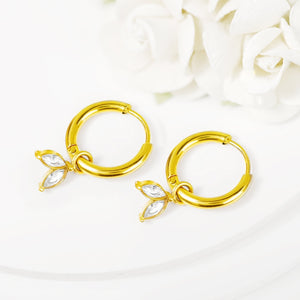 With Everlasting Elegance Leaf Earrings. elevate your style with minimal and timeless leaves crafted in 18k gold plated finish. The anti-tarnish and waterproof design ensures long-lasting beauty.