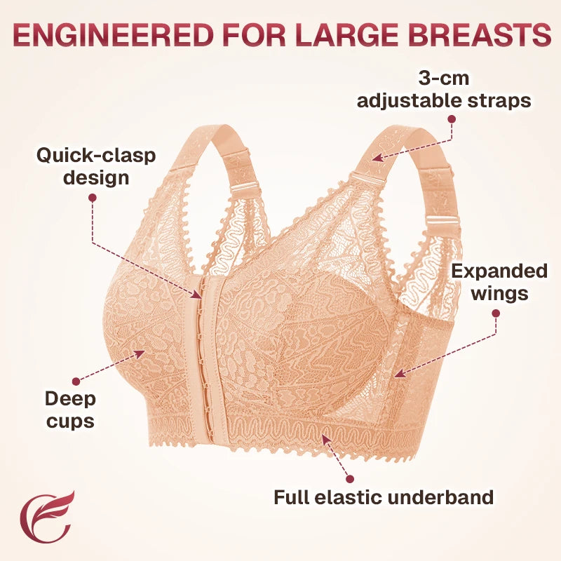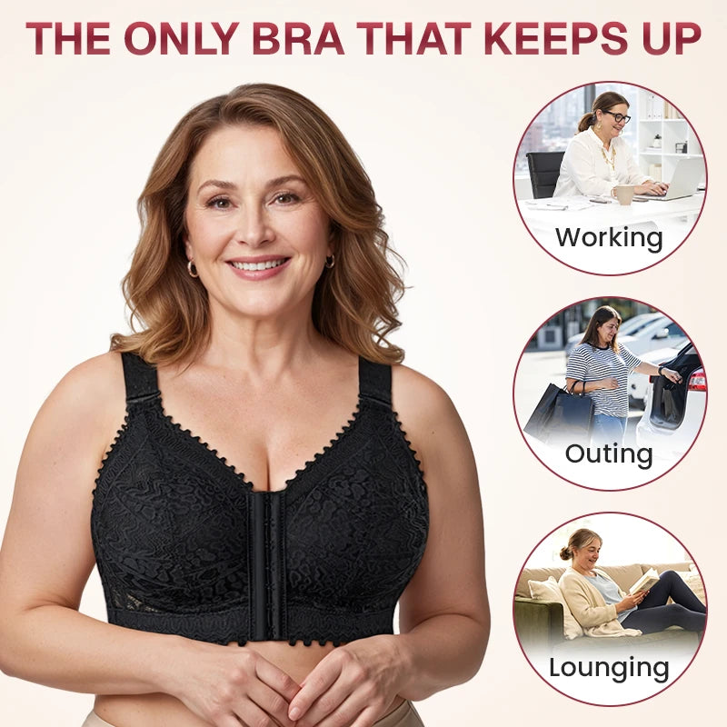 Full Bust Support Front Buckle Lace Bra