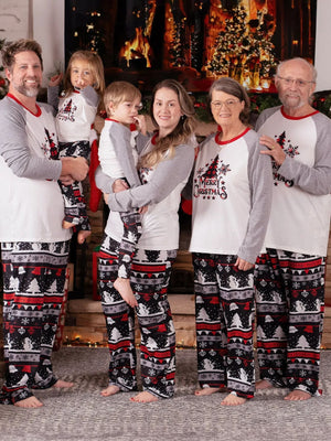 Gray and white Christmas tree truck Matching Family Christmas Pajamas