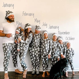 Gray & White Christmas Tree Print Matching Family Christmas Pajamas-Hats Included
