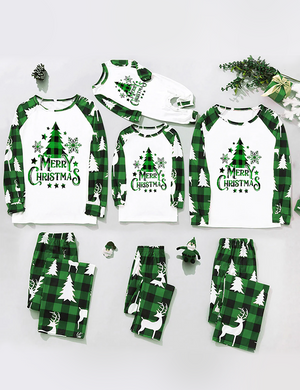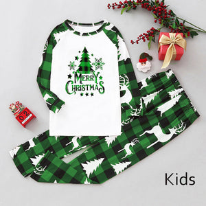 Green Plaid Christmas Tree Pattern Family Matching Pajamas Sets (with Pet's dog clothes)