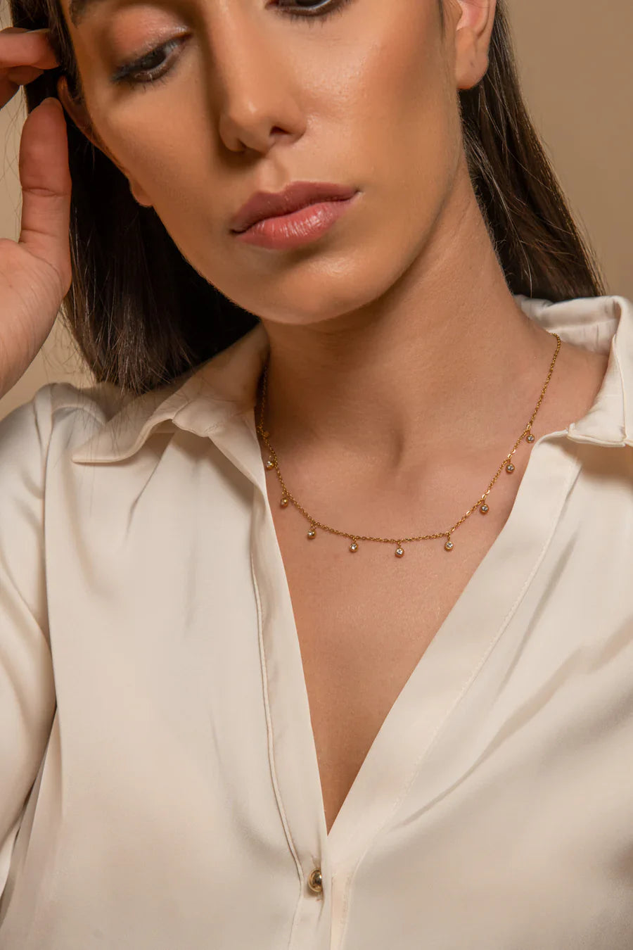 A timeless piece designed to complement any look. Whether layered for a modern touch or worn solo as a statement of elegance, this necklace adds effortless sophistication to your style. Crafted with care and made to shine, it is the perfect accessory for both everyday moments and special occasions.