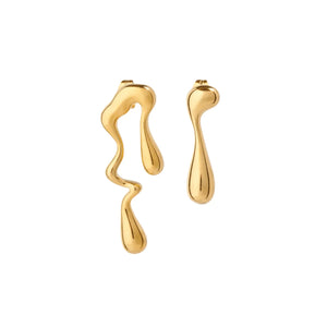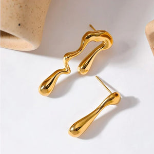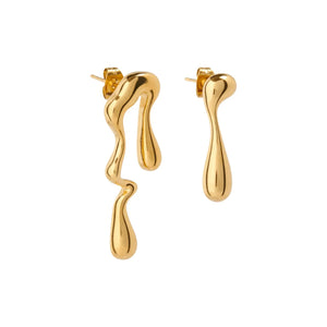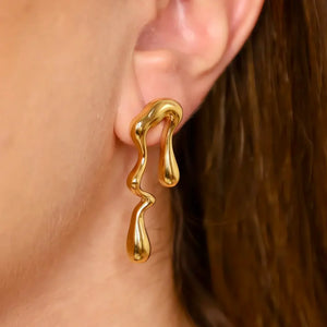 Crafted with 18k gold plating. the Melting Bliss Earrings offer a luxurious touch to any outfit. Waterproof for everyday wear. these earrings exude a sense of blissful elegance. Let them melt your heart with their stunning design.