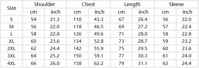 S, M, L, XL, 2XL, 3XL, 4XL, 5XL |