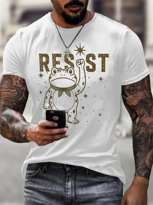 Men's Retro Resist Frog Printed Round Neck T-Shirt