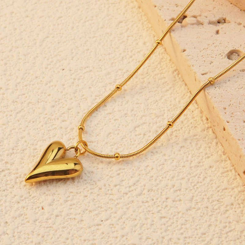 This elegant Pure Heart Necklace features a delicate beaded chain and a stunning heart pendant. Made with 18k gold plating. it is both beautiful and durable. making it perfect for everyday wear. Plus. the necklace is waterproof. ensuring long-lasting use. Show your love with this timeless piece.