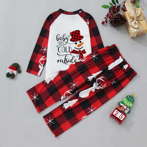 Red Plaid Snowman Pattern Matching Family Christmas Pajamas Sets