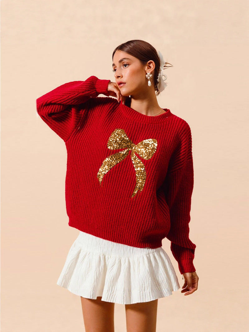🎄New Arrivals🔥Shining Golden Glow Sequin Bow Sweater