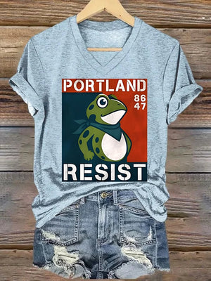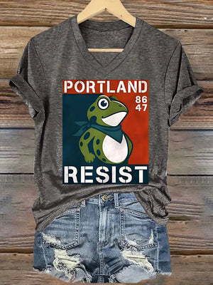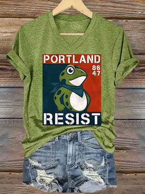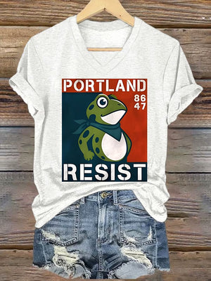 V-neck Women's Portland Frog 8647 resist Print T-Shirt