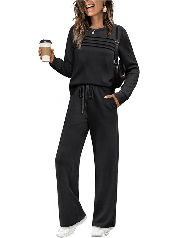 🔥LAST DAY 45% OFF✨Women's Crew Neck Lounge Set - Soft Cotton Top & Drawstring Pants