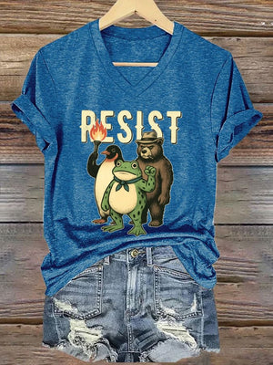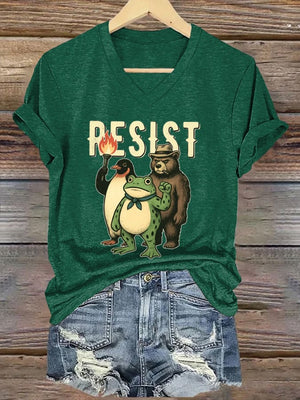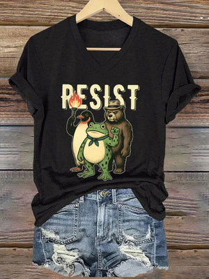 Women's FDT Portland Frog Protest Revolt Machine Print T-Shirt