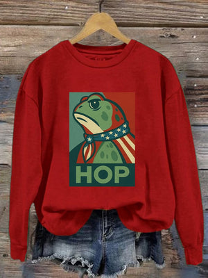 Home Women's Retro Hop Resist Frog Printed Round Neck Sweatshirt