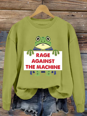 Women's Retro Hop Resist Frog Printed Round Neck Sweatshirt